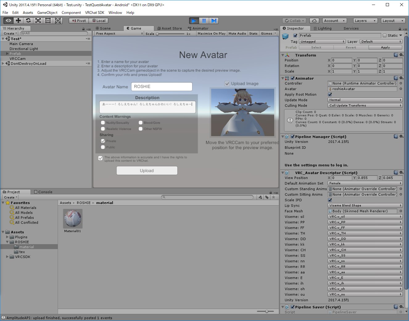 今回アップロード手順の説明にはBOOTHで無料配布もされている星咲月夜 様のQuest対応アバター「ロシエ」ちゃんを例に使わせていただきますですぅ!