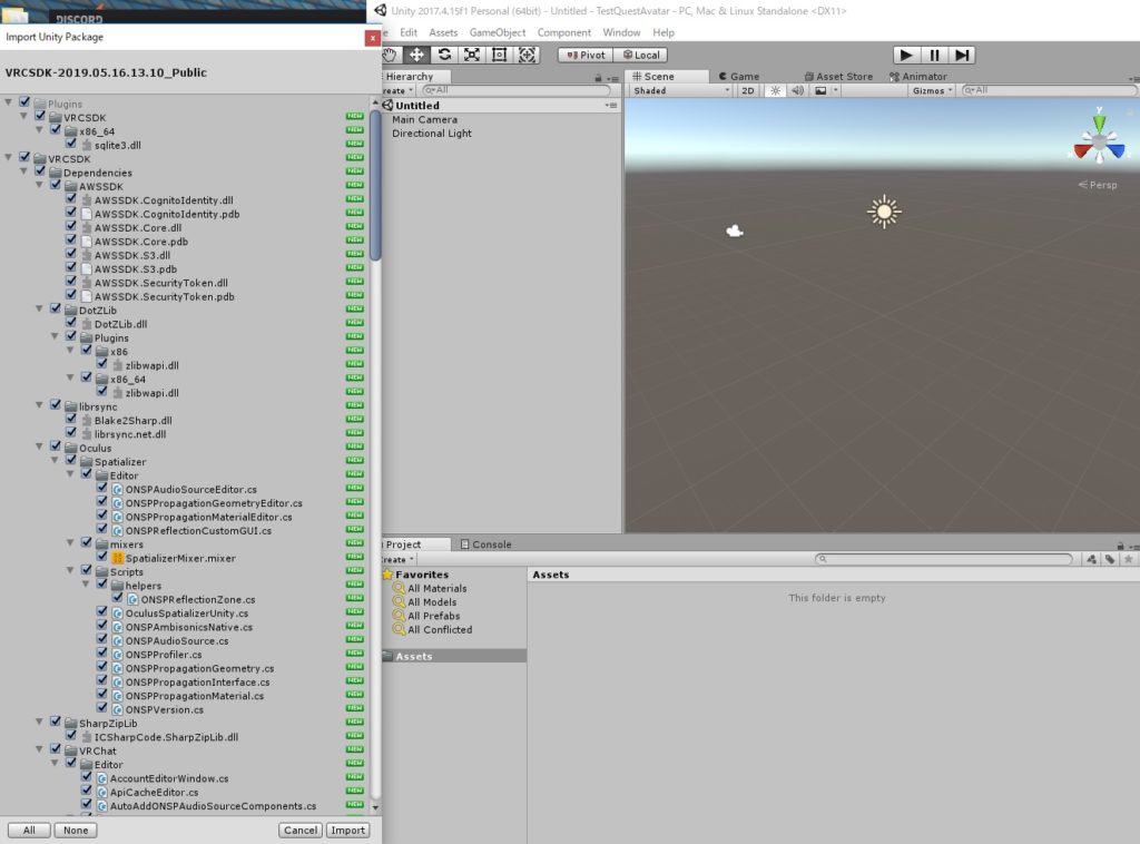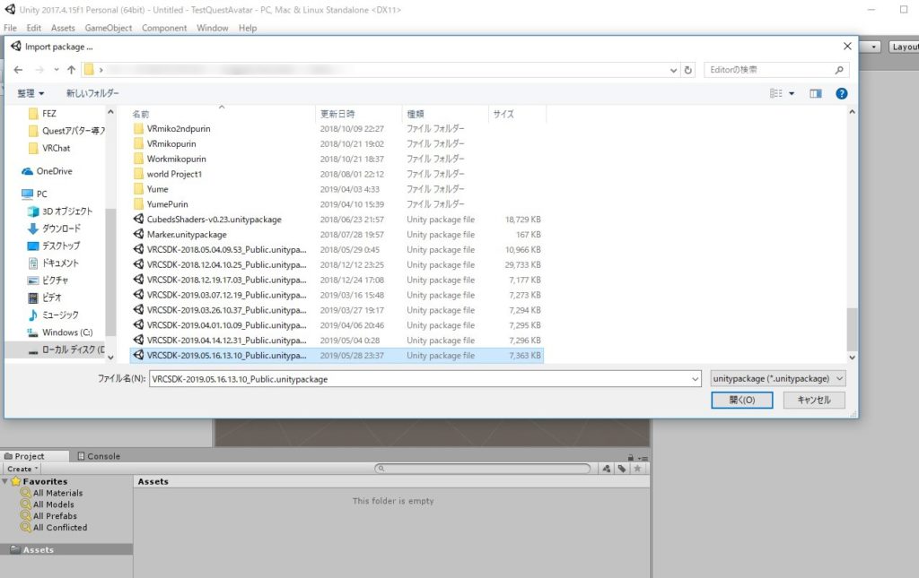 ここに今からアップロードする『アバター』とアップロードするのに必要な『VRChatSDK』を入れていきます