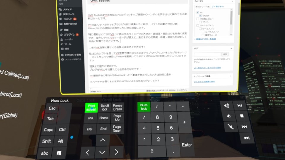 OVR ToolkitはVR空間上にPCのデスクトップ画面やウィンドウを表示させてマウス操作やキーボード操作ができる便利なツールです。